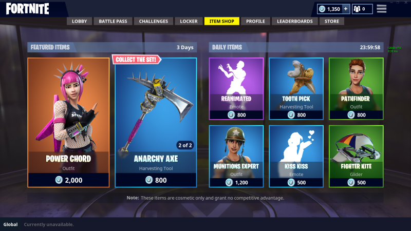 dit is de item shop daar komen om de dag nieuwe dansjes en skins in zoals je ziet. hier naast staat de shop waar je Vbucks kunt kopen. Vbucks kosten geld. Maar daar kun je wel weer skins van kopen. ER is ook een starter pack, daarbij krijg je een skin en 600 Vbucks (want je krijkt 100 bonus).